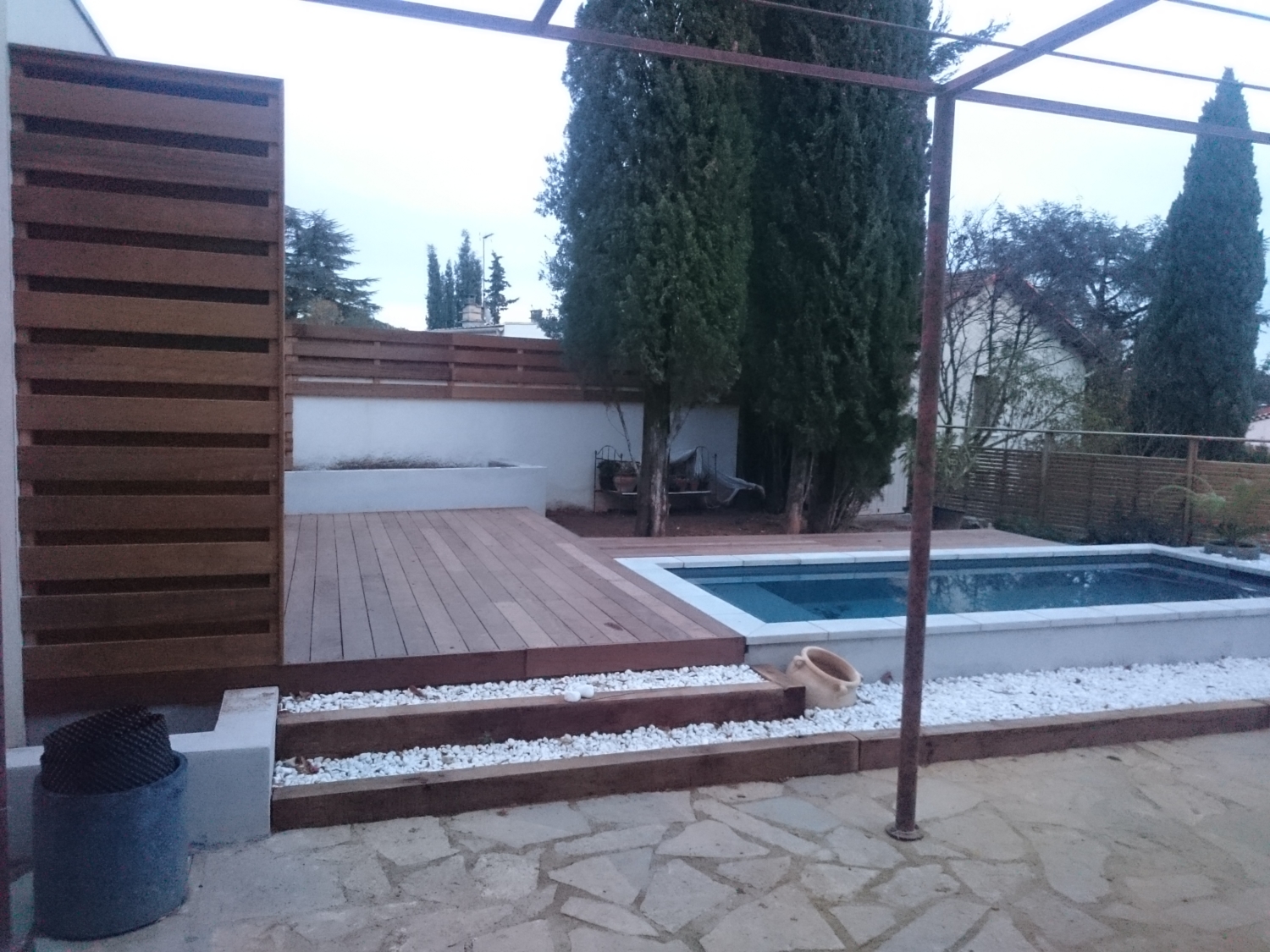 - Clôtures et pare-vues : Pour protéger votre intimité avec des structures en bois élégantes et contemporaines.