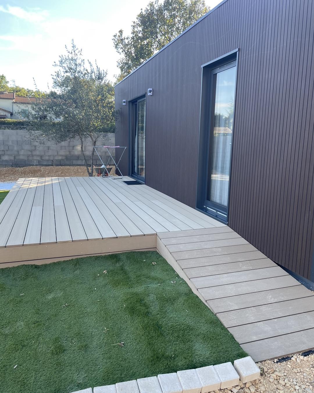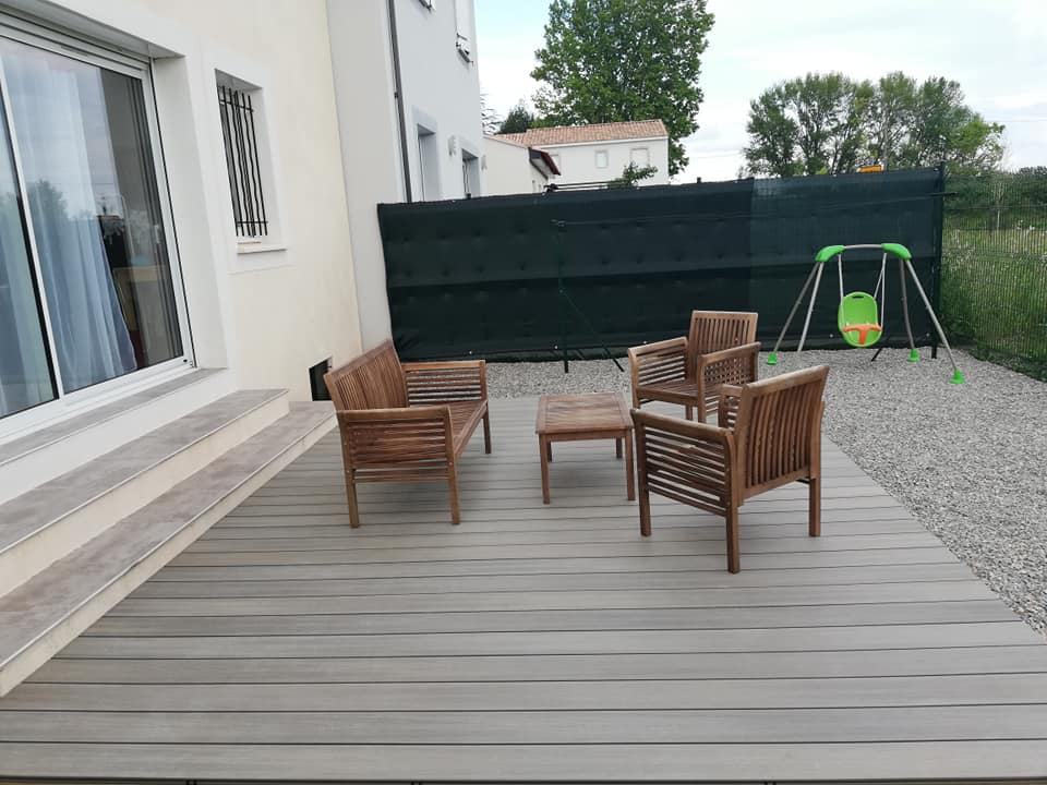 - Terrasses en bois composite : Alliez esthétisme moderne et facilité d’entretien. Nos composites de haute qualité imitent à la perfection le grain du bois tout en offrant une stabilité chromatique exemplaire dans le temps.